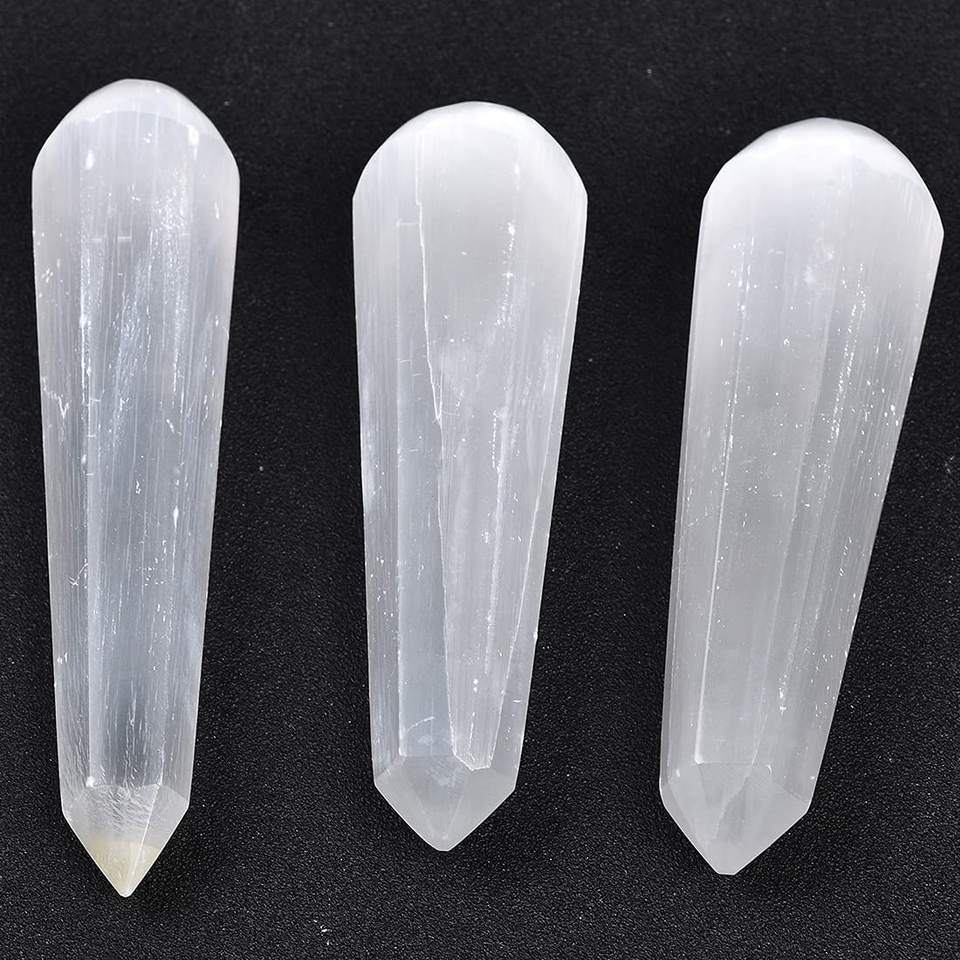 Selenite ไม้กายสิทธิ์คริสตัลธรรมชาติสำหรับผู้หญิงฮวงจุ้ยแกะสลักรูปกรวยแกะสลักแกะสลักของขวัญทางจิตวิญญาณสำหรับตกแต่งห้อง