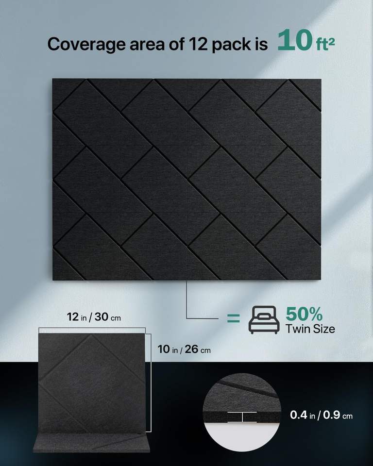 แผ่นอะคูสติกติดด้วยตนเองแพ็คผนังฉนวนกันเสียง12ชิ้นแผ่นฉนวนกันเสียงความหนาแน่นสูงบรรจุจดหมายสั่งซื้อ