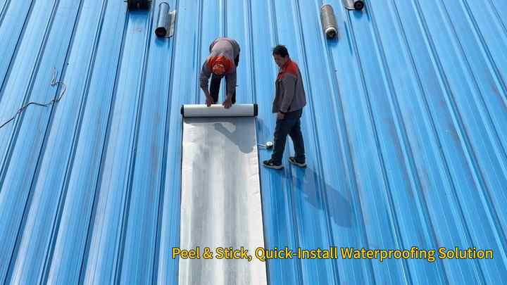 สติกเกอร์หลังคาเมมเบรนกันน้ำอลูมิเนียมฟอยล์มีกาวในตัวกันน้ำทนทานต่อการเกิดสนิมสำหรับการปรับปรุงคลังสินค้า
