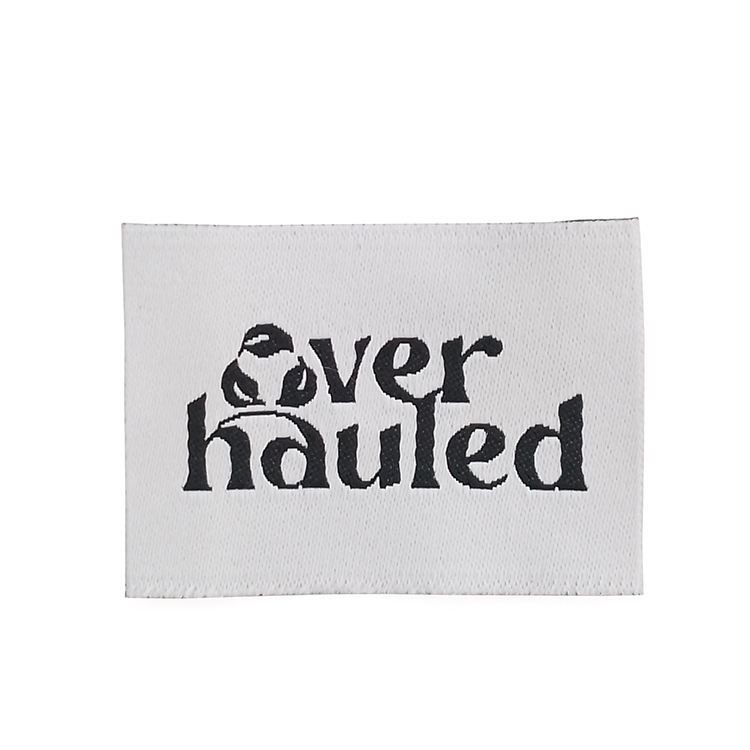 ขนาดกาวในตัวชื่อแบรนด์ดามัสกัสป้ายทอโลโก้ป้ายพิมพ์สําหรับเสื้อผ้าผ้าฝ้าย 100% ป้ายเสื้อผ้าที่กําหนดเอง