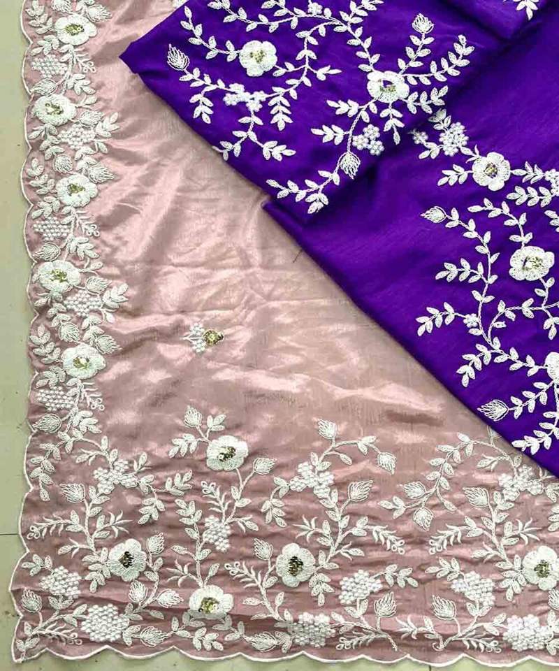 ชุดปาร์ตี้ผ้าส่าหรีแบบปักด้วยผ้าไหม500สำหรับผู้หญิง Alphanumero