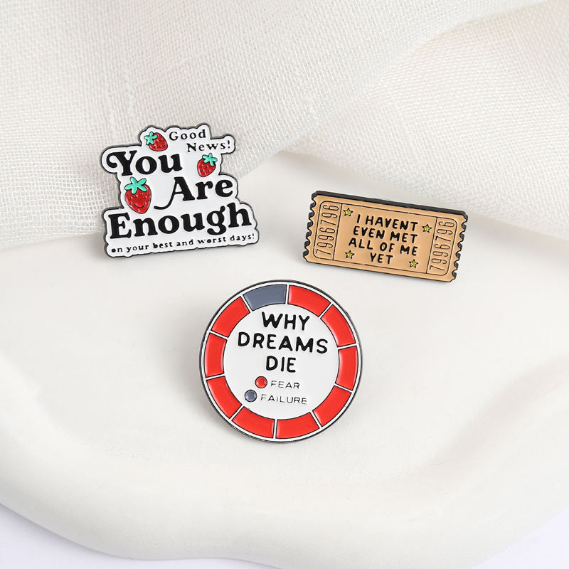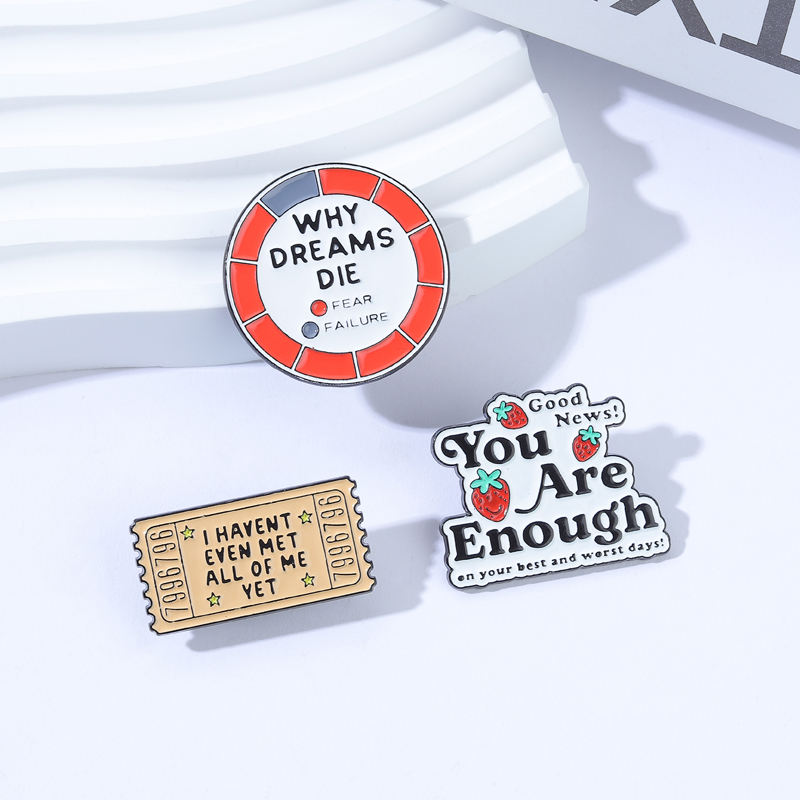 เข็มกลัดการเดินทางแห่งการค้นพบตัวตน ฉันยังไม่ได้พบกับตัวตนของตัวเองทั้งหมด ดีไซน์แบบตั๋ว ใช้เป็นเครื่องประดับสำหรับสวมใส่ในชีวิตประจำวัน สไตล์การเติบโตส่วนบุคคล