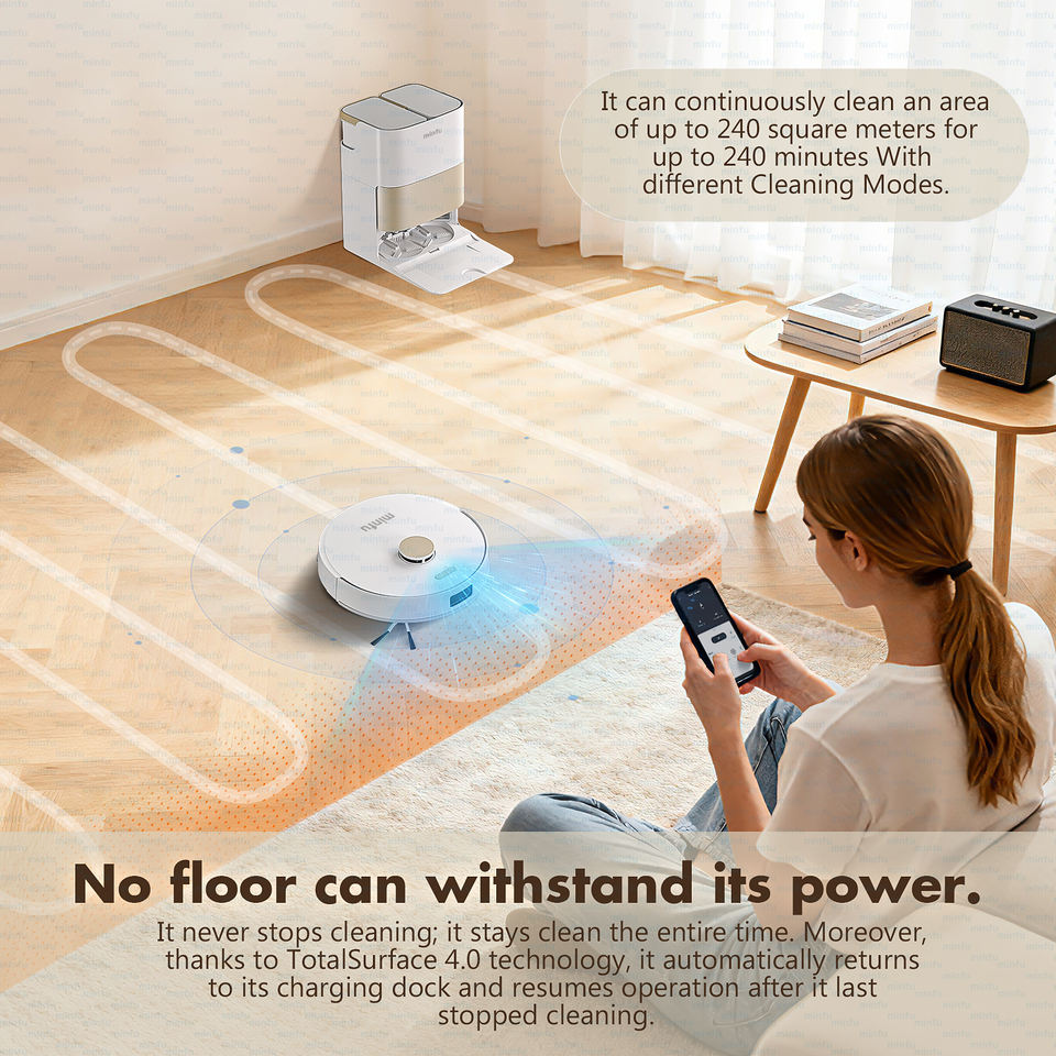 หุ่นยนต์ดูดฝุ่นแบบเทฝุ่นเองได้ ระบบนำทาง LDS กวาดและถูพื้นอัตโนมัติ แบบเปียก/แห้ง ควบคุมผ่านแอปพลิเคชัน สำหรับใช้ในบ้าน