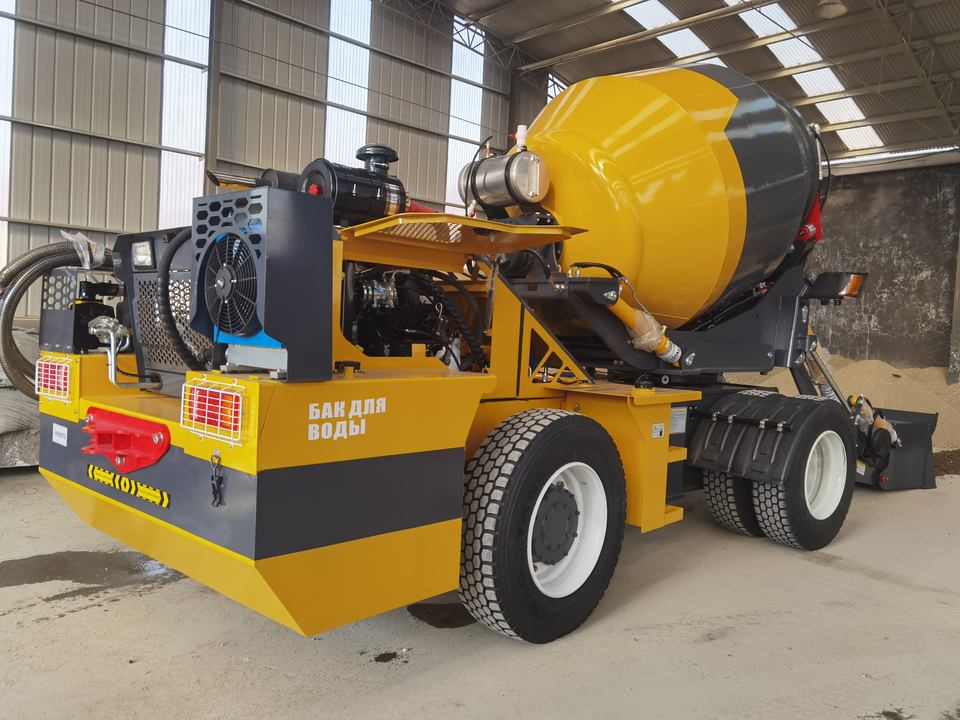 เครื่องผสมคอนกรีตรถ3.5ลูกบาศก์เมตรป้อนด้วยตัวเองรถผสมคอนกรีตเคลื่อนที่ได้