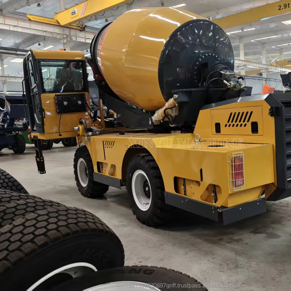 รถผสมคอนกรีตแบบโหลดเอง Xinyu พร้อมระบบไฮดรอลิกนำเข้า เครื่องยนต์ และเกียร์ สำหรับงานก่อสร้างถนน