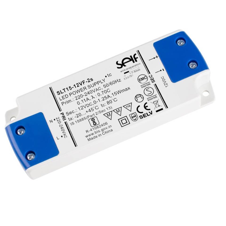 แหล่งจ่ายไฟ LED 12V 15W Sl15-12Vf-2s แรงดันคงที่ AC DC Converter ช่องเดียวผลิตในประเทศจีน