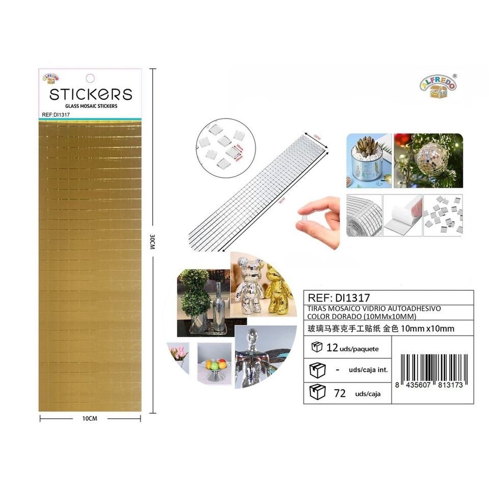 Self-adhesive glass mosaic strips in gold (10mm x 10mm) 10 x 30 cm - Art and decoration materials