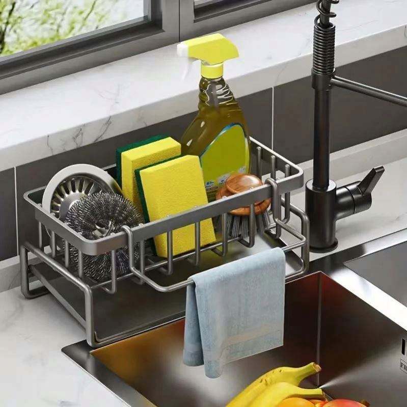 ชั้นวางอ่างล้างจานแบบระบายน้ำได้เอง ทำจากสแตนเลส ที่วางฟองน้ำและสบู่ สำหรับจัดระเบียบอ่างล้างจานในครัว