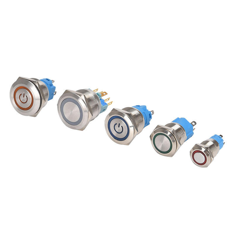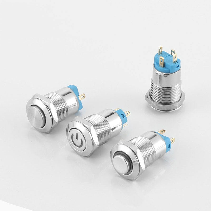 สวิตช์กดแบบกลมโลหะสแตนเลส รีเซ็ตอัตโนมัติ ขนาด 19 มม. 22 มม. 25 มม. 30 มม. ปิดผนึกกันน้ำ IP68 สวิตช์พีโซ 12V