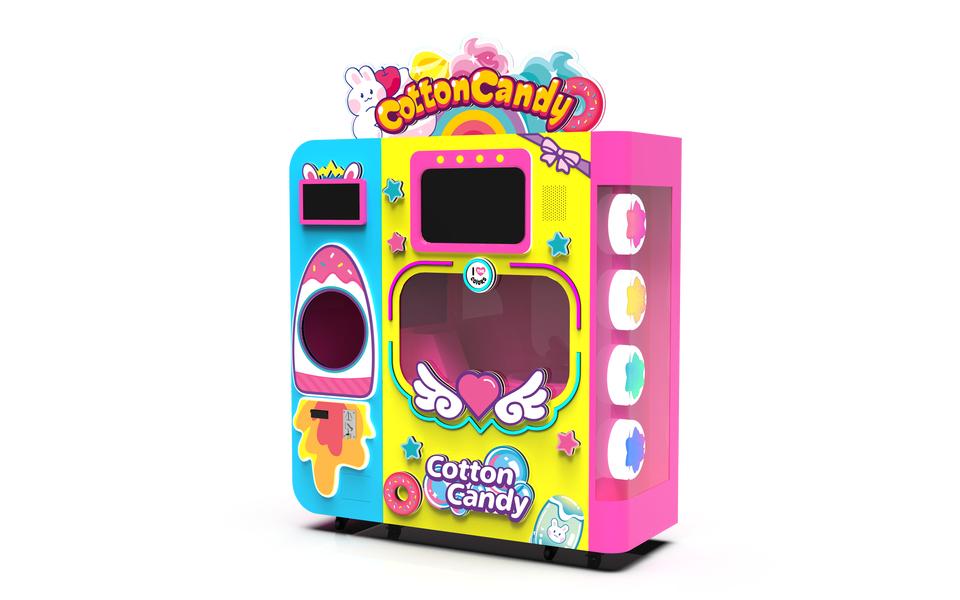 เครื่องทำสายไหมโลหะแบบหยอดเหรียญ บริการตนเอง มีหลากหลายรสชาติ พร้อมลำโพงมีไฟในตัว และตัวเลือกปรับแต่งได้