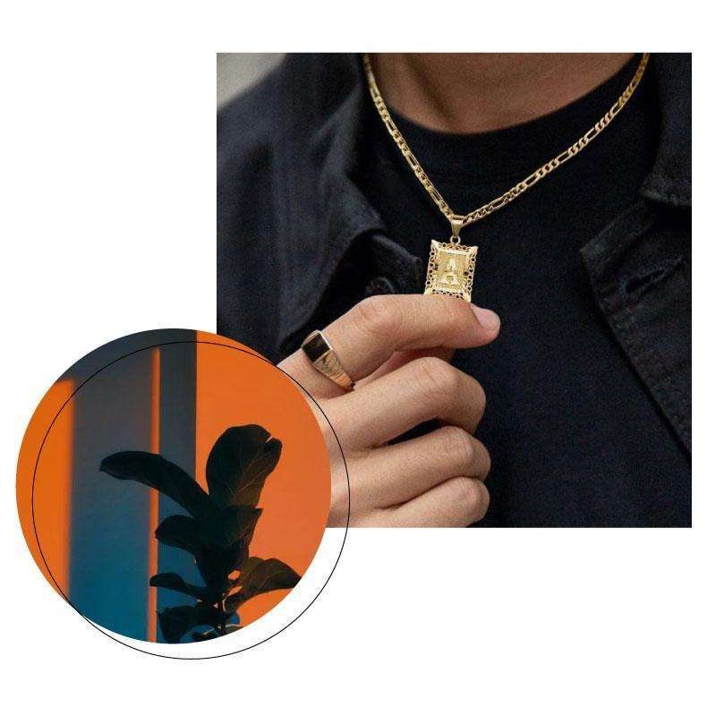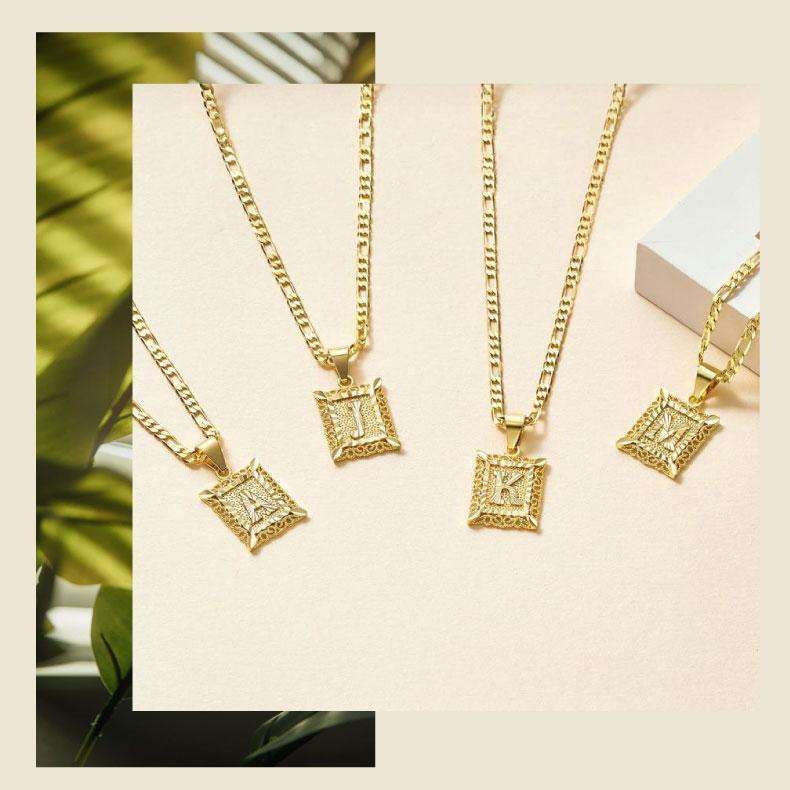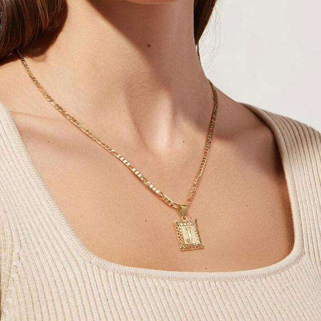 สร้อยคอจี้ตัวอักษรแบบเรียบง่าย ชุบทอง 18K สำหรับทุกเพศ ตัวอักษร A-Z รูปทรงสี่เหลี่ยม พร้อมหินธรรมชาติ สไตล์สปอร์ต