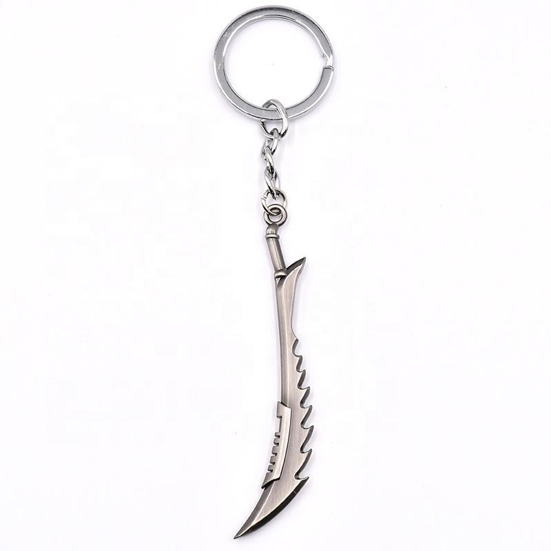 ขายดีในการแข่งขันพิเศษตัวละครยอดนิยม lols อุปกรณ์ประกอบฉากงานฝีมือโลหะพวงกุญแจดาบ
