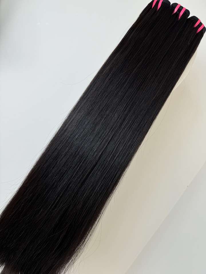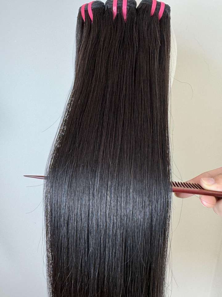 เวียดนาม100% เรียผมต่อเส้นด้ายทอแบบเรียบไร้รอยต่อหรูหราสไตล์ตรงกระดูกสีดำ25% ออก!