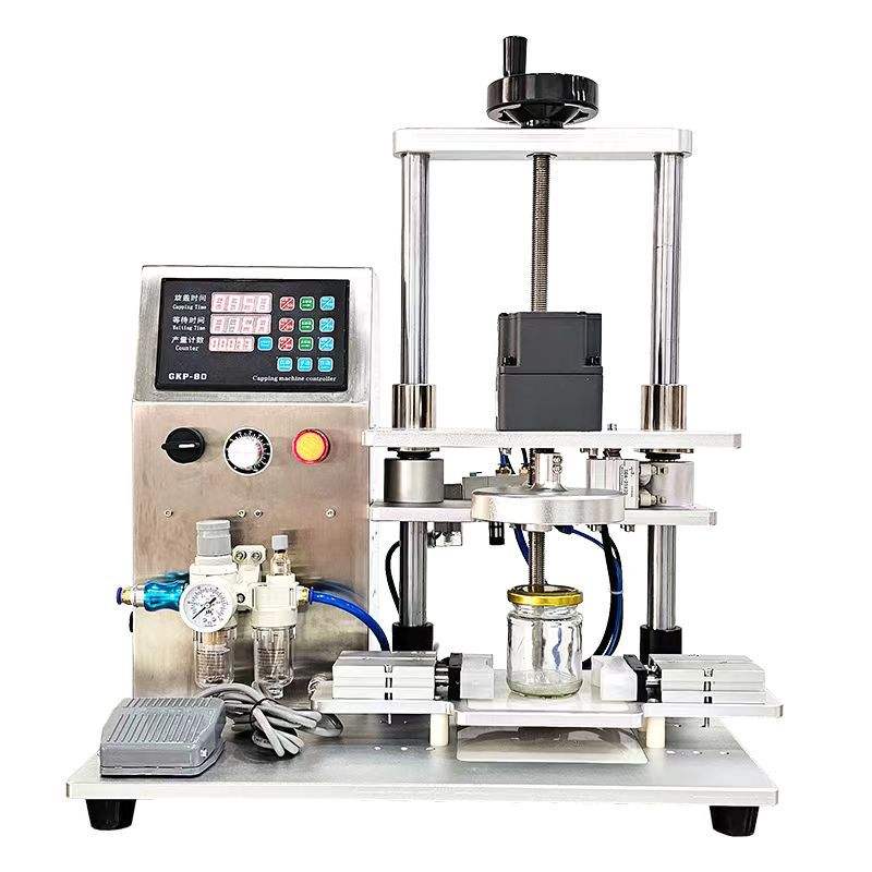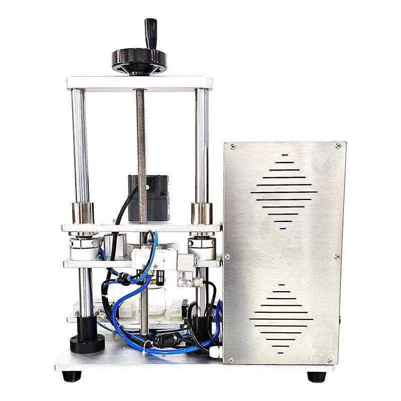 เครื่องปิดฝาขวดกึ่งอัตโนมัติ ขนาดเส้นผ่านศูนย์กลางขวด 20 มม. ใช้มอเตอร์กลไก เกรดอาหาร ปลั๊กยุโรป 220 โวลต์ ใช้งานง่าย รับประกัน 1 ปี
