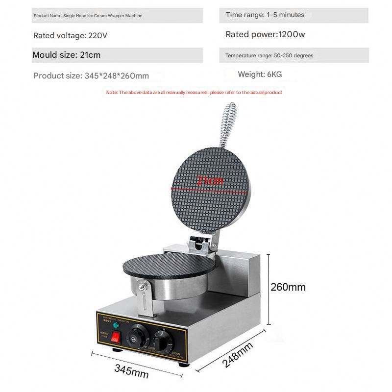เครื่องทำโคนไอศกรีมไฟฟ้ากึ่งอัตโนมัติเชิงพาณิชย์ เครื่องทำวาฟเฟิลโคนไอศกรีมแบบม้วนไข่เชิงพาณิชย์