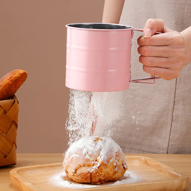 Semi-Automatic Stainless Steel Flour Sifter Handheld Kitchen Baking Tool for Powdered Sugar & Flour Household Cake Tool