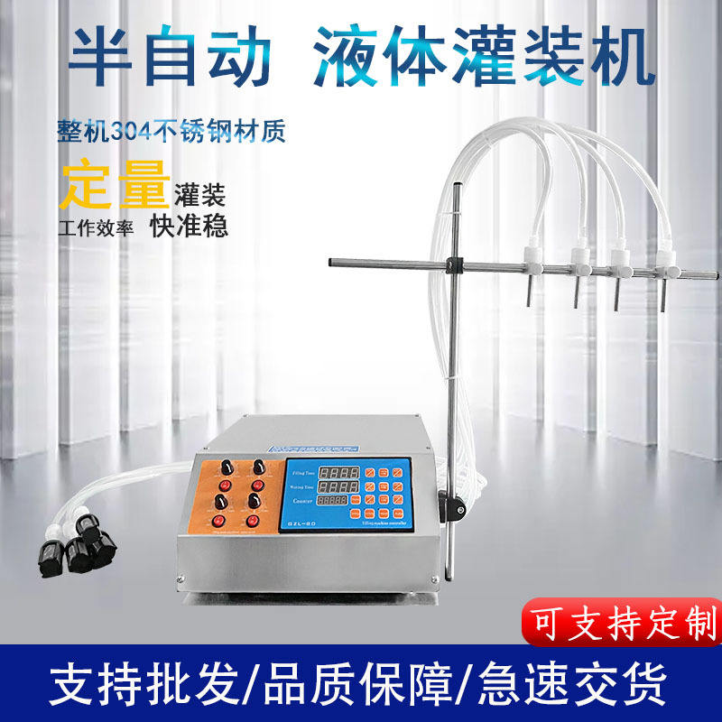 เครื่องบรรจุของเหลวกึ่งอัตโนมัติ 220V ปั๊มไฟฟ้าสำหรับน้ำ แอลกอฮอล์ น้ำมันหอมระเหย ความแม่นยำสูง รุ่นตั้งโต๊ะ