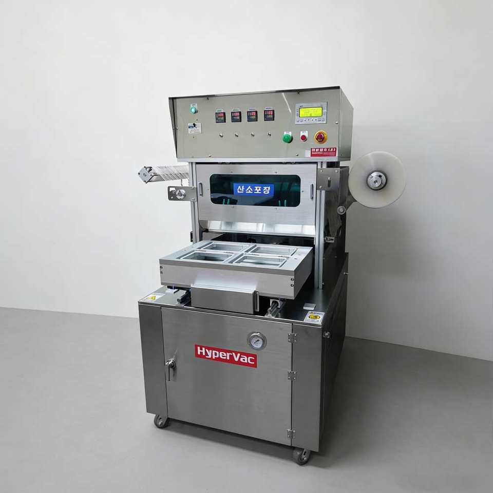 เครื่องซีลถาดแบบกึ่งอัตโนมัติ บรรจุภัณฑ์บรรยากาศดัดแปลง ระบบเติมก๊าซ ซีลและตัด วัสดุสแตนเลส 304 รับน้ำหนักได้ 150 กก.