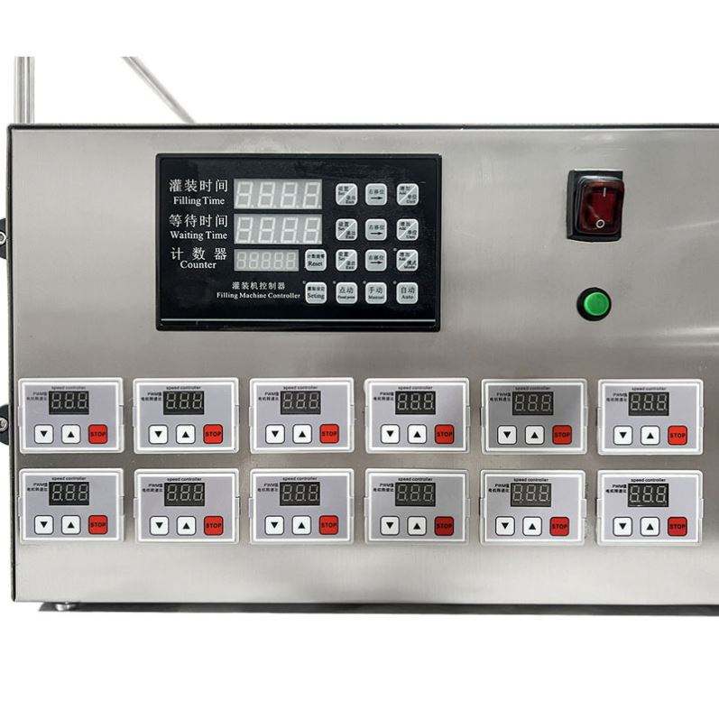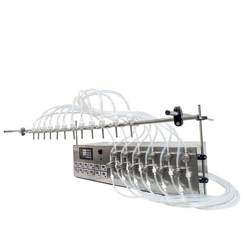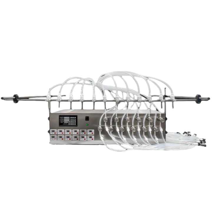เครื่องบรรจุของเหลวแบบกึ่งอัตโนมัติชนิดปั๊มแม่เหล็ก 12 หัวฉีด สำหรับเครื่องดื่ม น้ำผึ้ง เบียร์ ครีม แอลกอฮอล์ นม เครื่องดื่ม เครื่องสำอาง น้ำยาบ้วนปาก