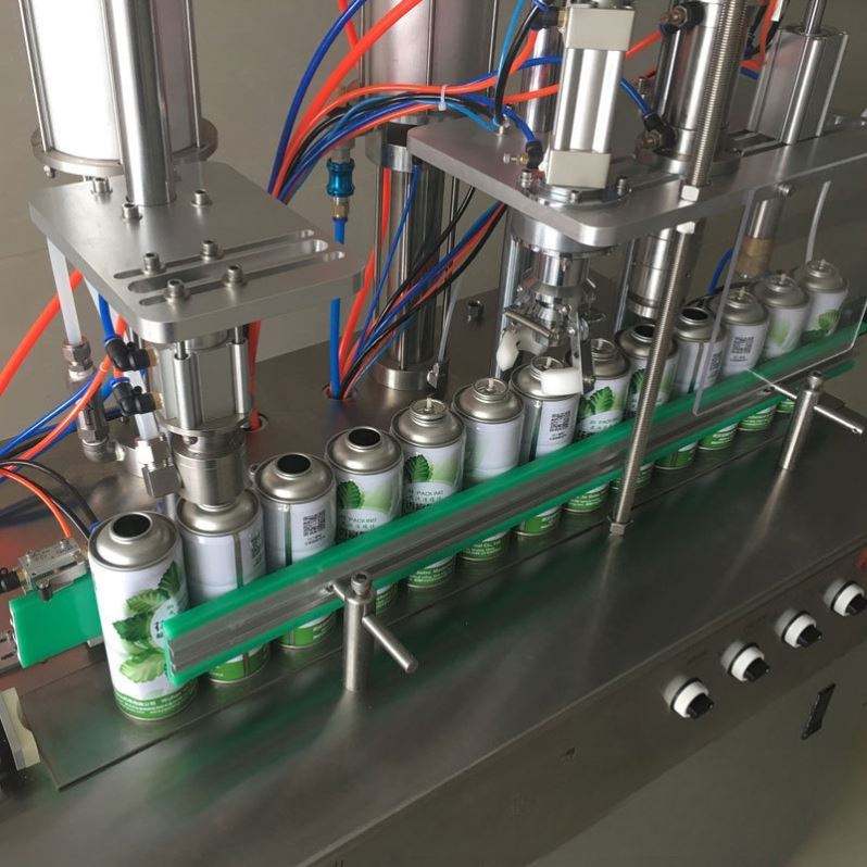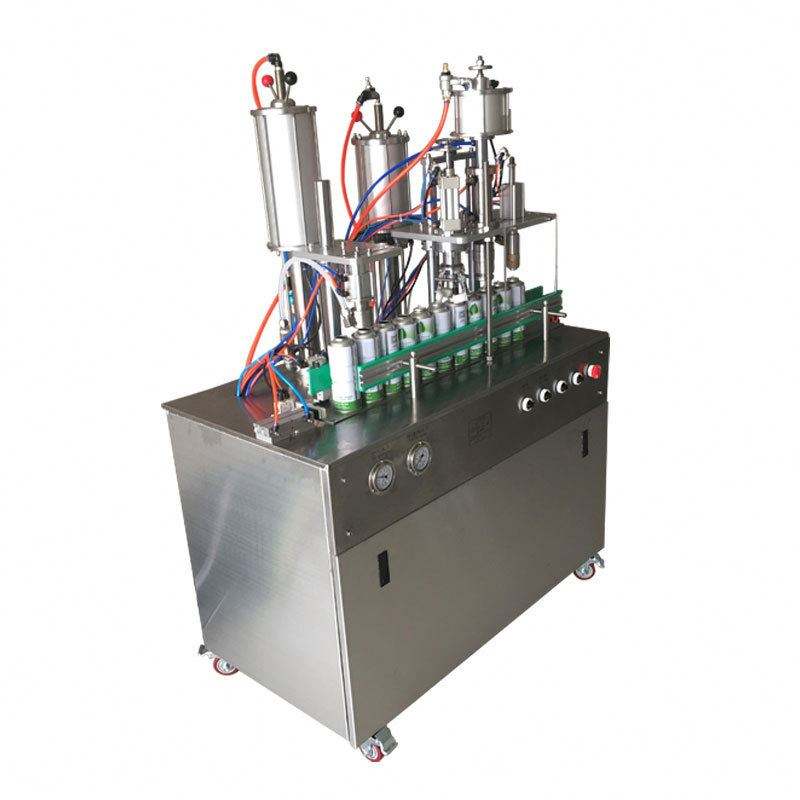 เครื่องบรรจุสเปรย์กึ่งอัตโนมัติแบบแมนนวลสำหรับบรรจุโพรเพน บิวเทน น้ำหอม หรือผลิตภัณฑ์ระงับกลิ่นกาย หรือสเปรย์ปรับอากาศ