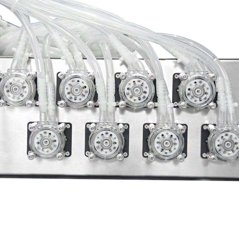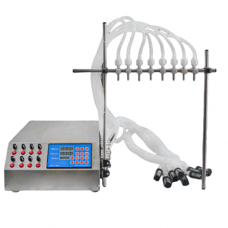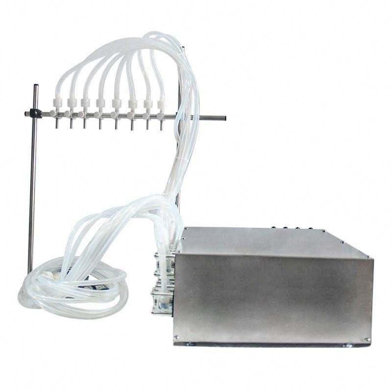 เครื่องบรรจุแบบกึ่งอัตโนมัติชนิดปั๊มเพอริสตัลติก 8 หัวฉีด สำหรับบรรจุเหล้า น้ำผึ้ง นม น้ำมันพืช น้ำหอม น้ำแร่ และเครื่องดื่ม