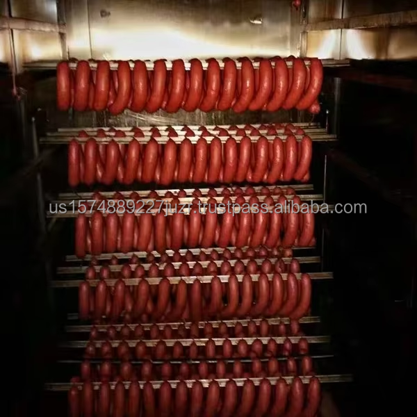 เครื่องรมควันไส้กรอกกึ่งอัตโนมัติ เครื่องรมควันเนื้อ สเตนเลส 304 ใช้ไฟฟ้า กำลังไฟ 18 กิโลวัตต์ สำหรับแปรรูปเนื้อสัตว์