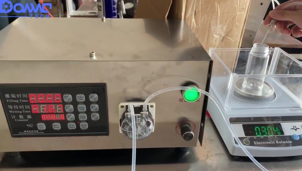 เครื่องบรรจุของเหลวแบบกึ่งอัตโนมัติสำหรับขวดขนาดเล็ก 0.1 มล. สำหรับน้ำมันหล่อลื่น น้ำหอม เครื่องสำอาง ยาทาเล็บ และตัวทำละลาย