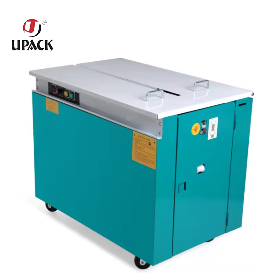 เครื่องรัดกล่องกึ่งอัตโนมัติ เครื่องรัดกล่องฮัวเลียน เครื่องรัดกล่องสายพลาสติก PP เครื่องรัดกล่องกระดาษแข็ง เครื่องรัดกล่อง