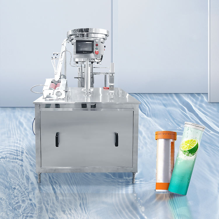 เครื่องบรรจุยาเม็ดวิตามินซีแบบฟู่กึ่งอัตโนมัติในหลอดพร้อมปิดผนึกและบรรจุภัณฑ์