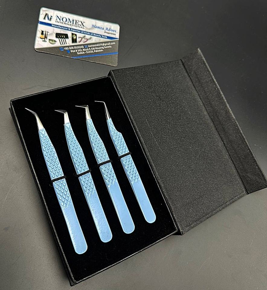 Semi Curved & 90 Degree Eyelash Extension Tweezers Blue Powder Coated with Polished Tip Tweezers Sustainable Stainless Steel