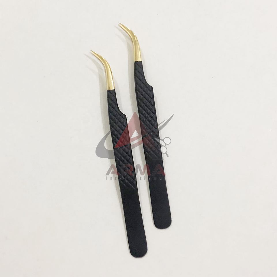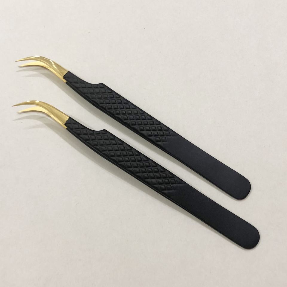 แหนบต่อขนตากึ่งโค้งทำจากสเตนเลสปลายเคลือบสีดำ