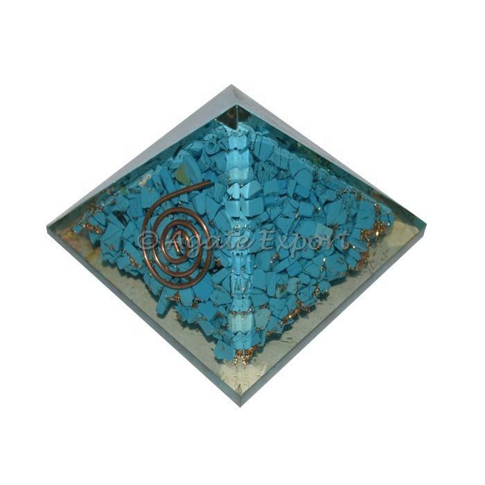 ปิรามิดหินธรรมชาติกึ่งมีค่าปิรามิดออร์แกนไนท์สีเทอร์ควอยซ์