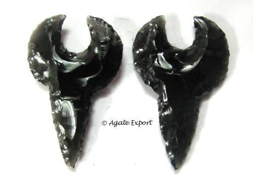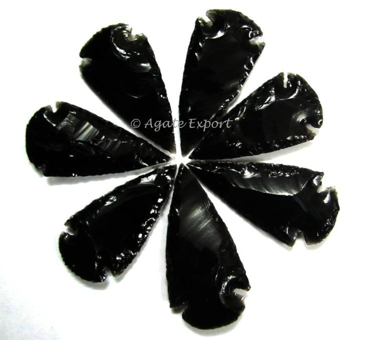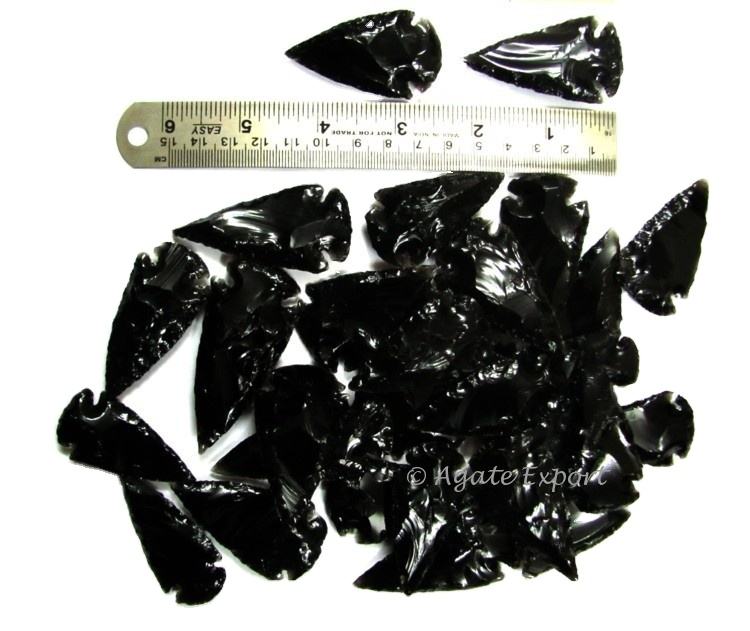หินกึ่งมีค่างานฝีมือหัวลูกศรสีดำออบซิเดียน2นิ้ว