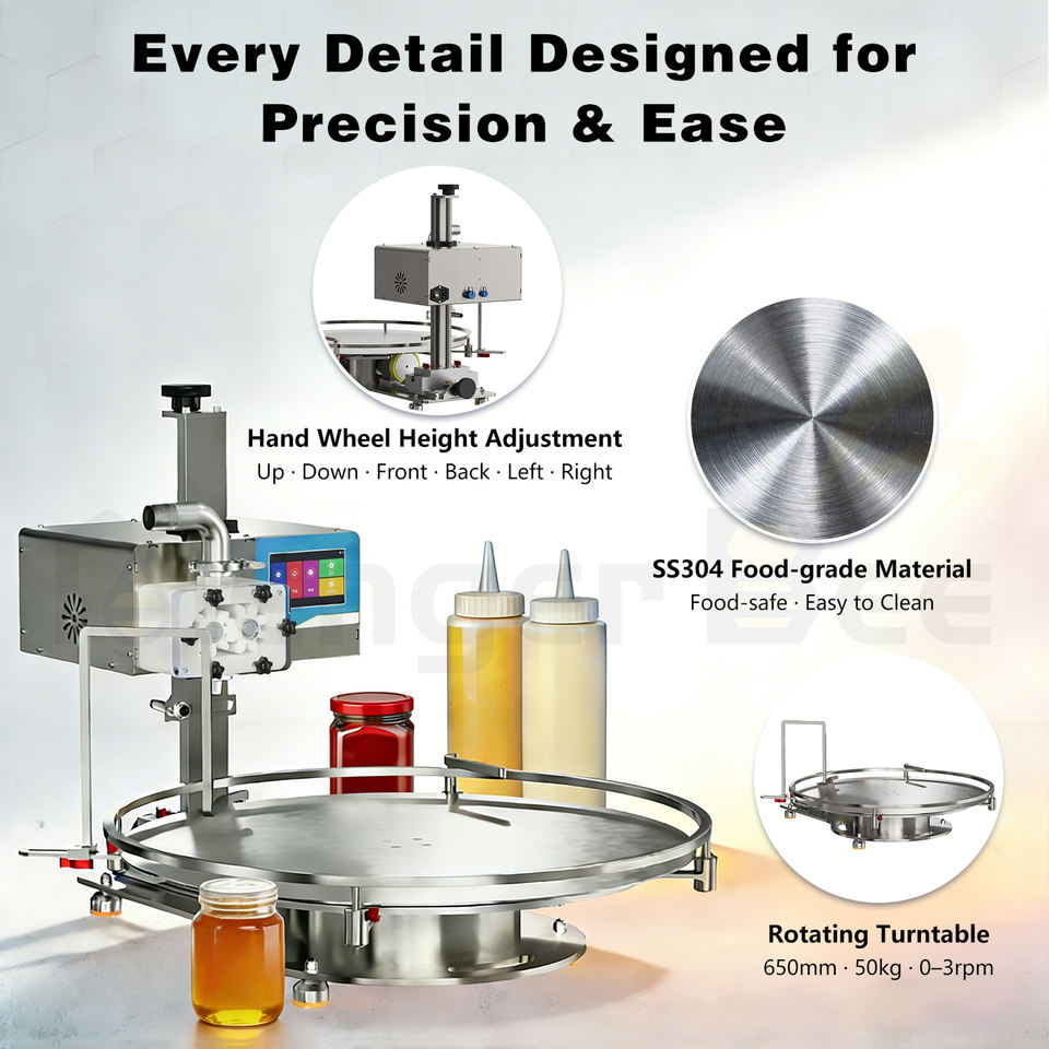 เครื่องบรรจุของเหลวข้นกึ่งอัตโนมัติแบบโรตารี่ดิสก์เกียร์ปั๊มสำหรับบรรจุน้ำผึ้ง ครีม แยม พร้อมระบบชั่งน้ำหนัก