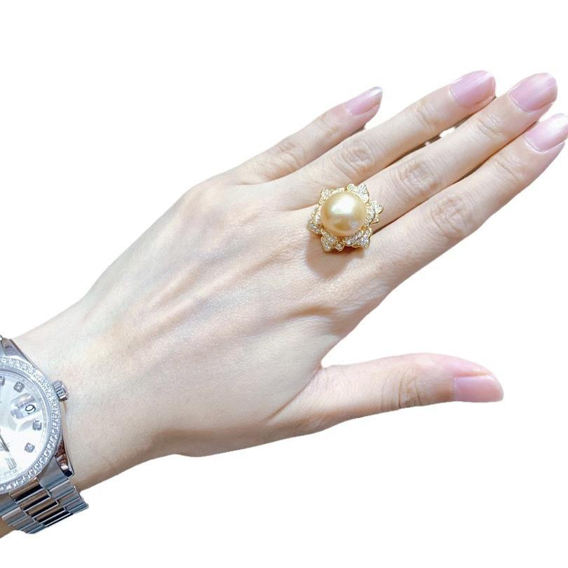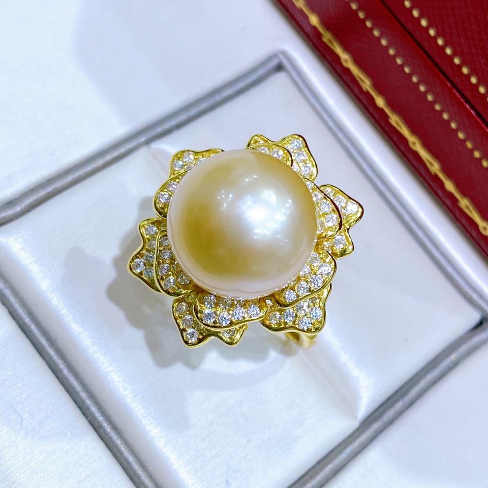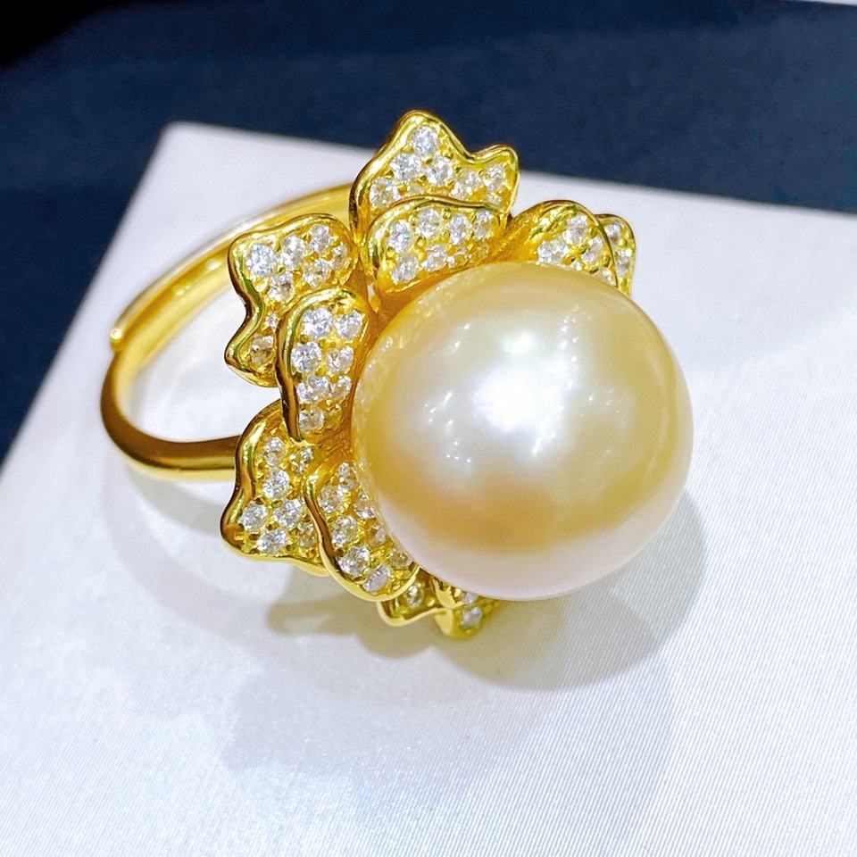 ส่งแหวนแฟชั่นทรงกลมสีทองธรรมชาติ 13-14 มม. ประดับด้วยลูกปัดเงินแท้สไตล์ญี่ปุ่นรูปดอกไม้บาน ให้แฟนสาวของคุณ