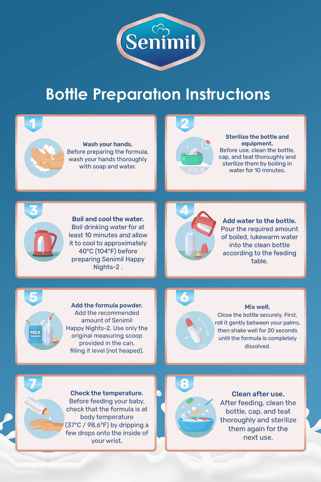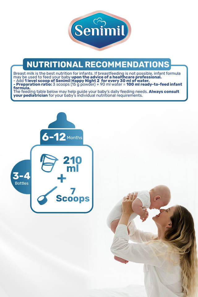 นมผงเซนิมิล แฮปปี้ ไนท์ส 2 สำหรับเด็ก 300 กรัม สูตร 2 เสริมด้วย DHA น้ำมันสาหร่าย GOS FOS พรีไบโอติกส์ ปราศจากน้ำมันปาล์ม สูตรกลางคืน