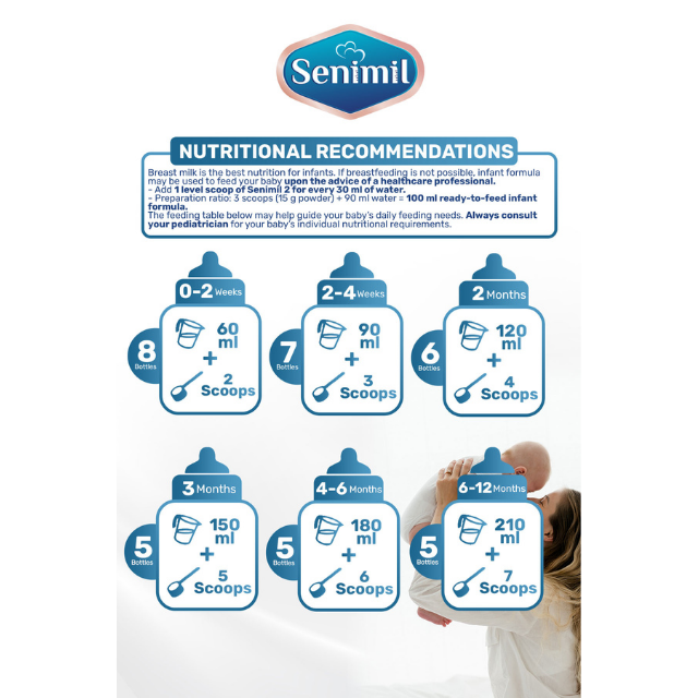 นมผงสูตรพรีเมียม เซนิมิล สำหรับชงเอง 400 กรัม ปราศจากน้ำมันปาล์ม เสริมด้วย DHA GOS FOS สำหรับทารก 6-12 เดือน ระยะที่ 2 ปราศจาก GMO