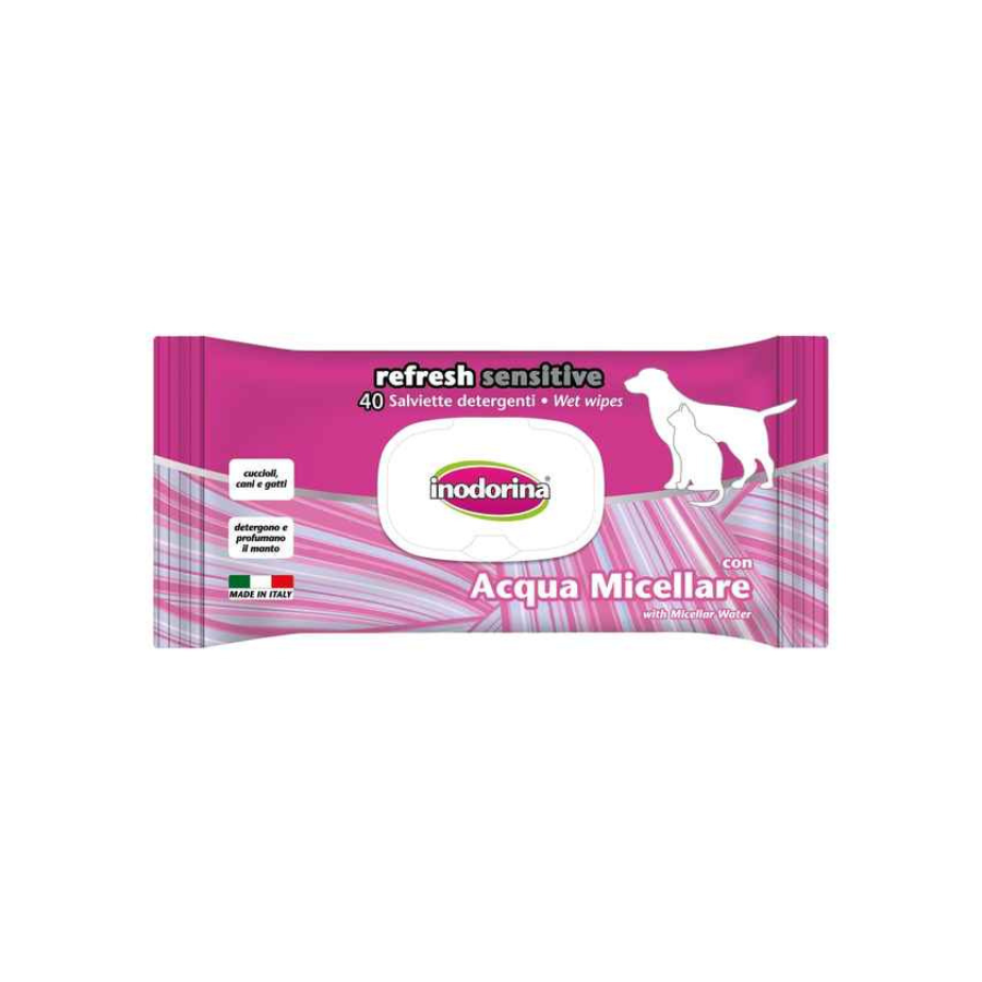 Inodorina micellar น้ำสำหรับสัตว์เลี้ยงสูตรอ่อนโยนต่อผิว40ชิ้นสำหรับสัตว์เลี้ยงที่มีอาการแพ้