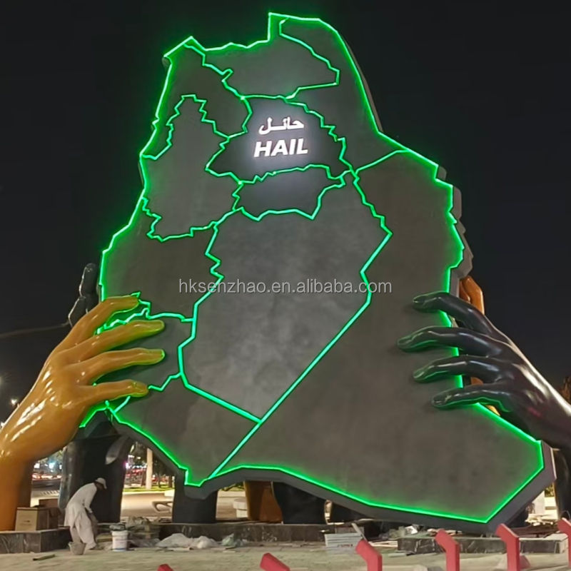 Senzhao การตกแต่งรูปปั้นแผนที่ซาอุดิอาระเบียไฟ LED ลวดลายสำหรับสวนกลางแจ้งกันน้ำ