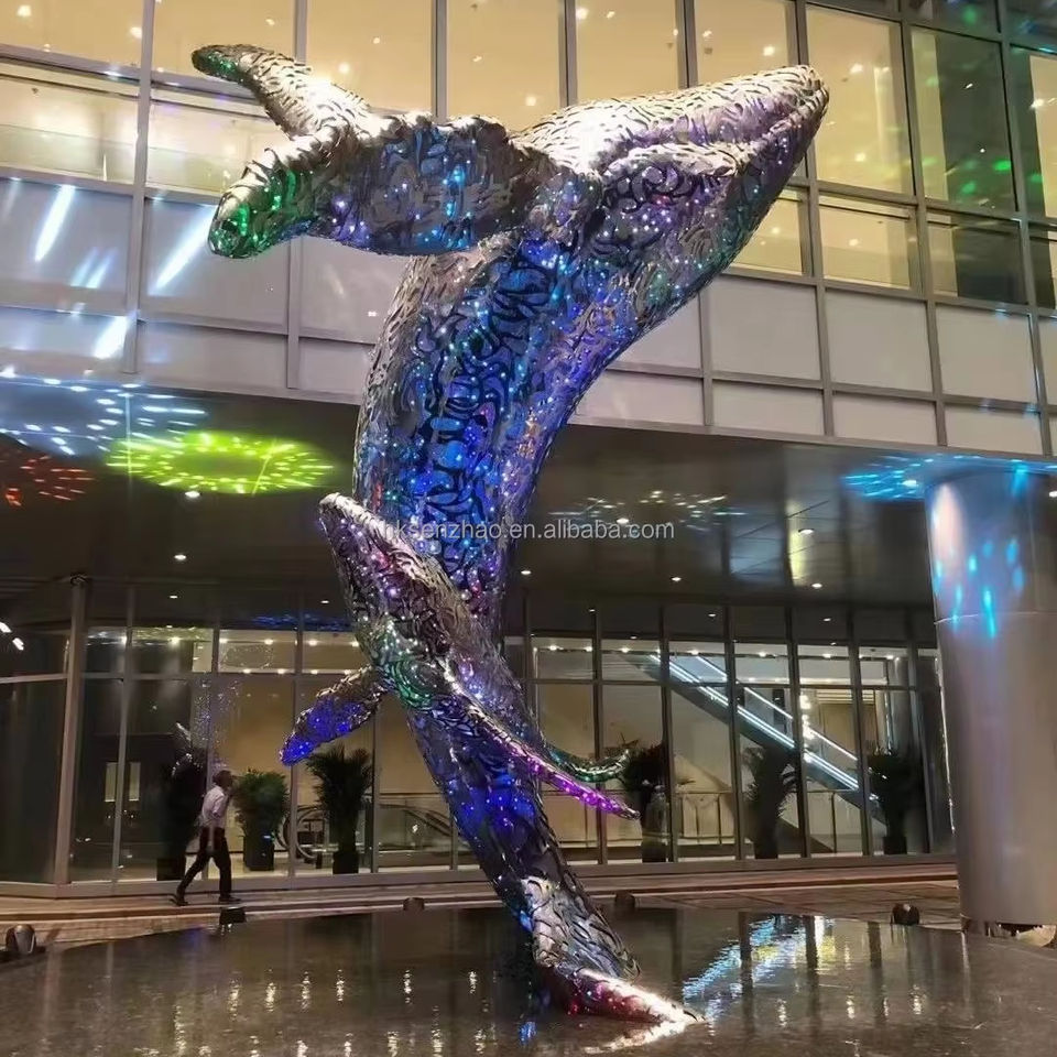 Senzhao ประติมากรรมขนาดใหญ่สำหรับกลางแจ้งที่ทันสมัยรูปปั้นปลาวาฬสแตนเลสประติมากรรมโลหะตามสั่งในสวน