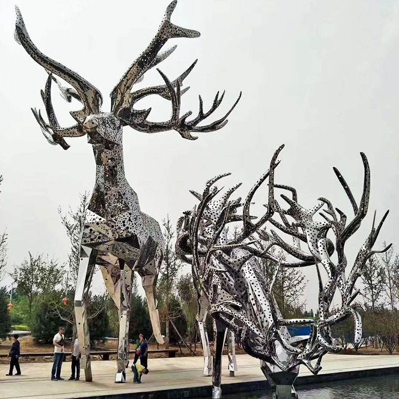 ประติมากรรมกวางสแตนเลสเซนจ้าว โมเดิร์น พาร์ค ประติมากรรมสัตว์สั่งทำพิเศษ