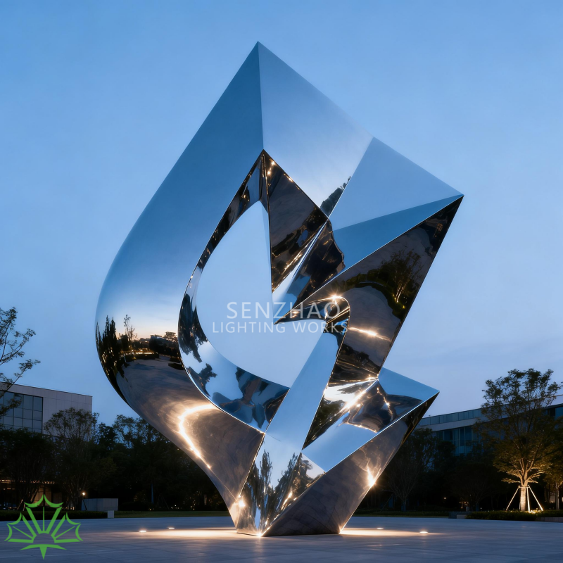 งานศิลปะเชื่อมโลหะเซนเจา ดีไซน์ขัดเงา ประติมากรรมโลหะสแตนเลสสมัยใหม่