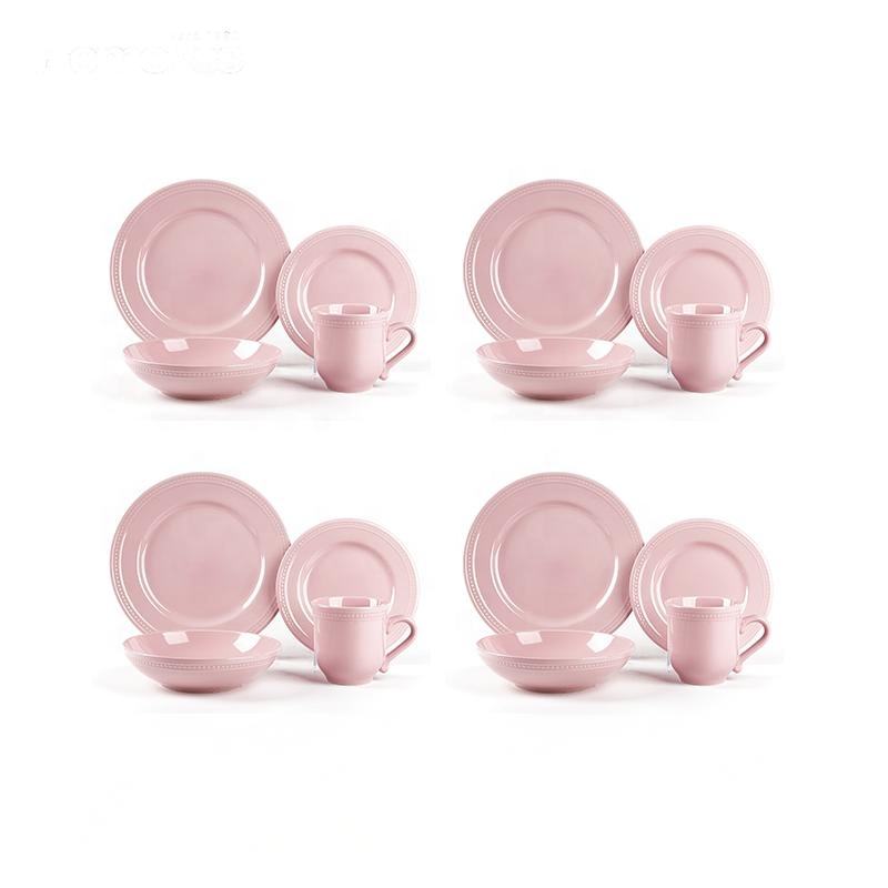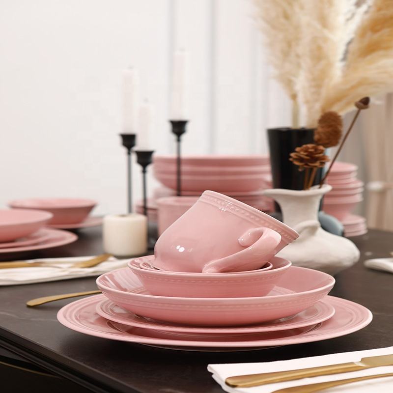 โปรโมชั่นเดือนกันยายน ชุดจานชามสีชมพู เหมาะสำหรับงานแต่งงานหรือห้องรับประทานอาหารสำหรับครอบครัว ชุดอาหารเย็น