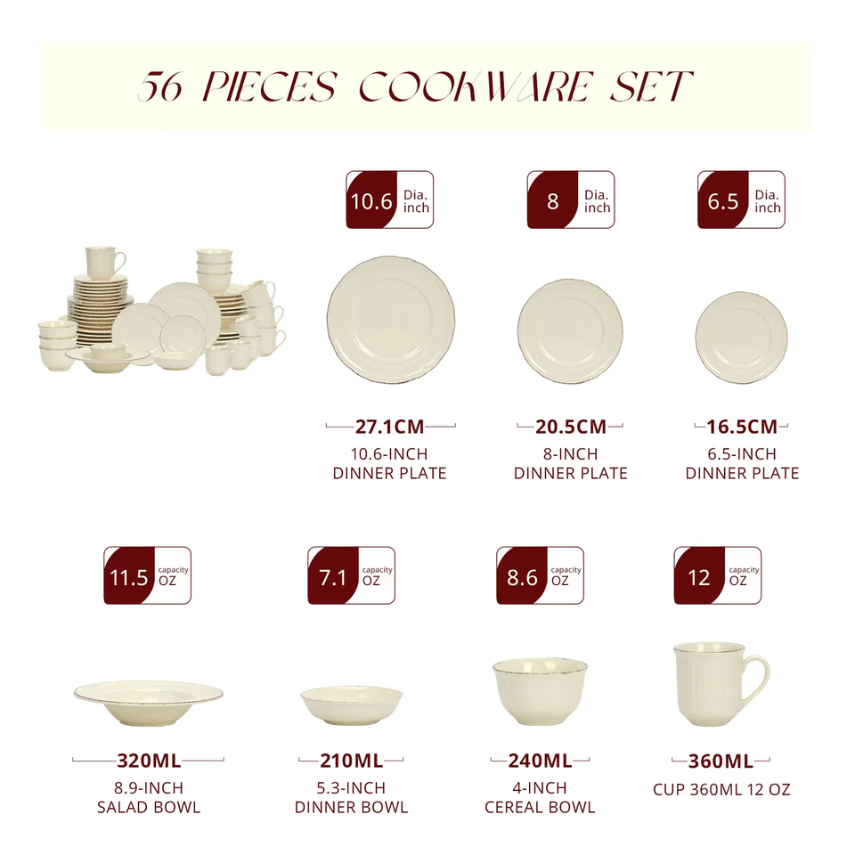 ชุดโปรโมชั่นเดือนกันยายน ชุดอาหารเซรามิกหรูหราสำหรับครอบครัว 2025 ชุดอาหารค่ำยุคหิน จานเซรามิก ชามข้าว