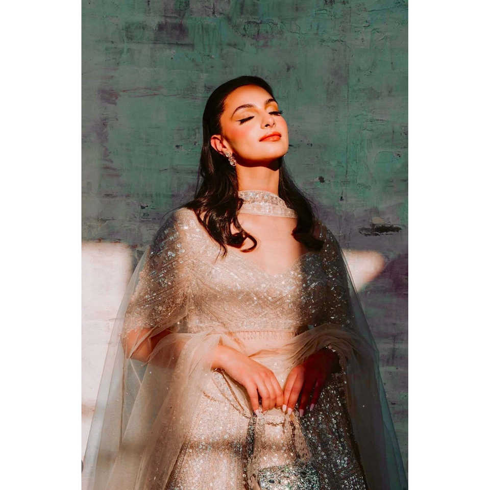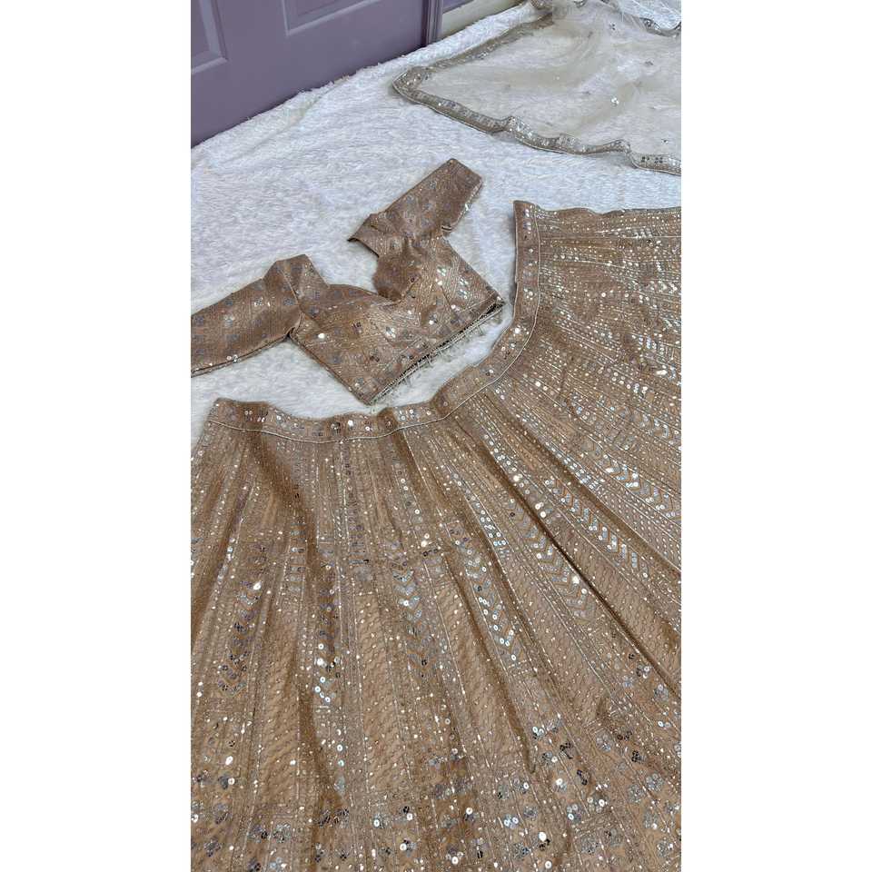 FB Beige Size M Sequence & Dori Work Lehenga Choli Party Wear Supplies