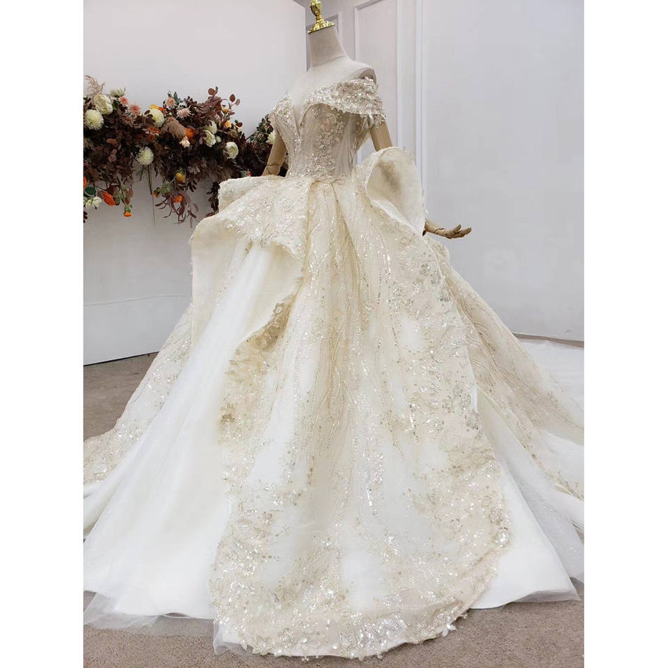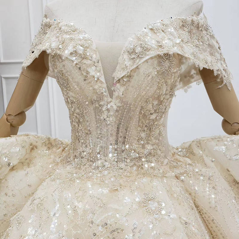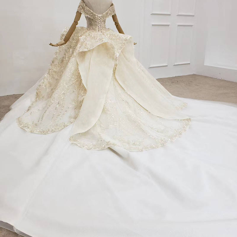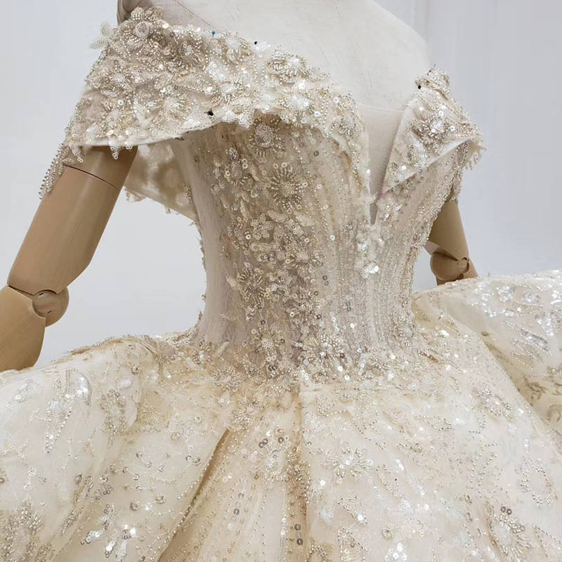 ชุดแต่งงานแขนกุดประดับไข่มุกหรูหราปรับแต่งตามอารมณ์