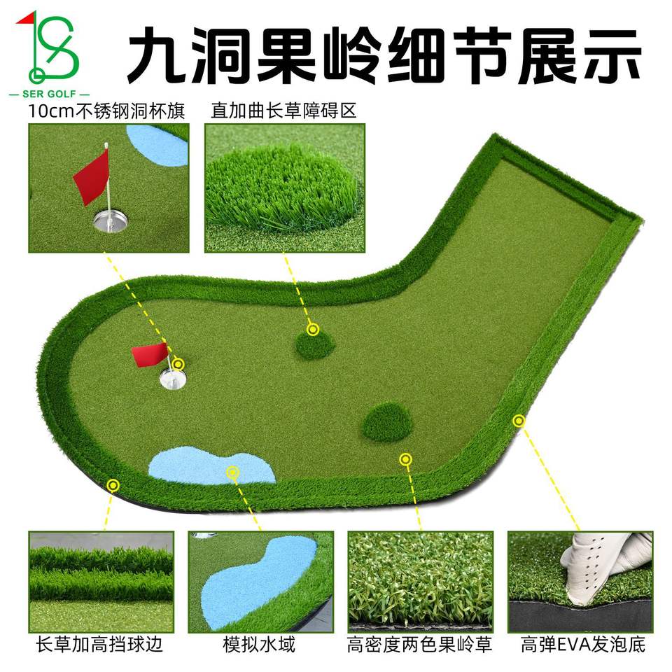 สนามพัตต์กอล์ฟแบบพกพา ขนาด 300x150 ซม. สำหรับฝึกซ้อมในร่มและกลางแจ้ง ดีไซน์สนามมินิกอล์ฟ 9 หลุม