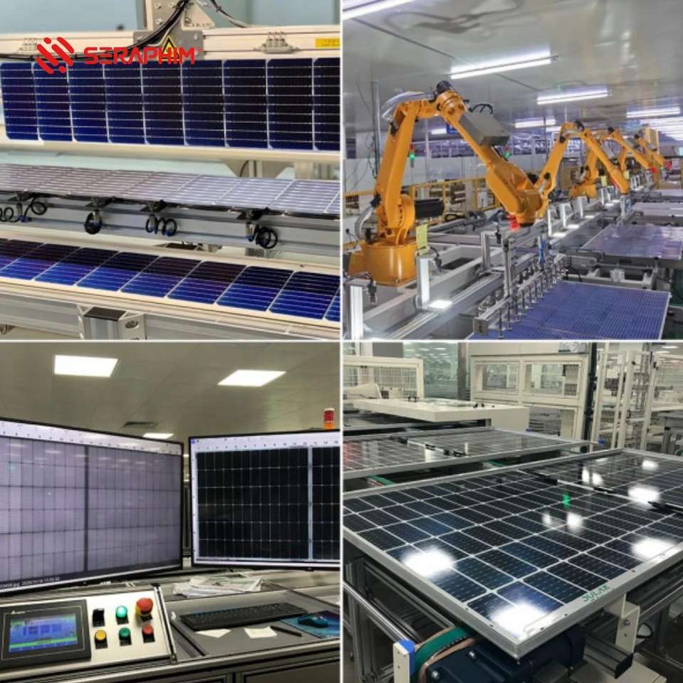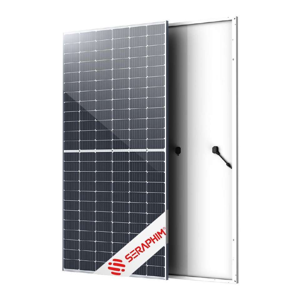 แผงโซลาร์เซลล์แบบโมโนคริสตัลไลน์ HJT PERC สองหน้า ยี่ห้อ Seraphim กำลังไฟ 400-660 วัตต์ ประสิทธิภาพ 21% แรงดันไฟฟ้า 1000/1500 โวลต์ กระแสตรง