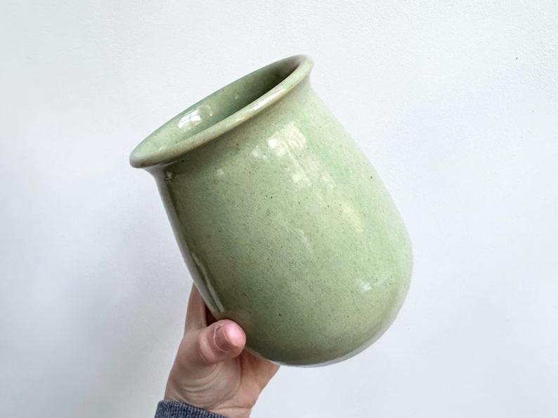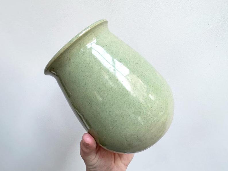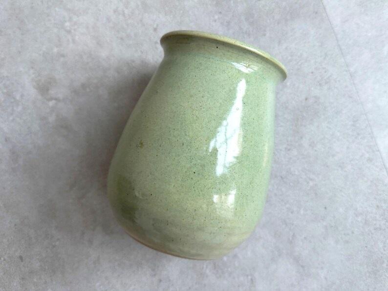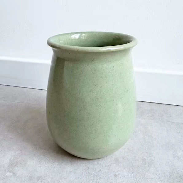 แจกันเซรามิกสีเขียวมิ้นท์สงบ พร้อมรูปทรงโค้งมนอันนุ่มนวล เคลือบเงาแบบมีลายจุดเล็กน้อย และดีไซน์เหนือกาลเวลาสำหรับพื้นที่ใช้สอยสมัยใหม่