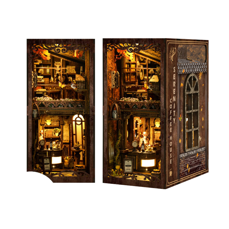 ที่วางหนังสือไม้รูปร้านกาแฟเซเรนิตี้ แบบ 3 มิติ ของตกแต่งบ้านและพื้นที่อ่านหนังสือ ประกอบเองได้